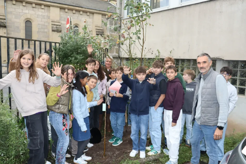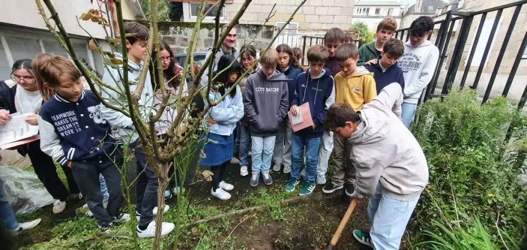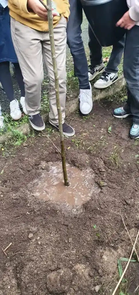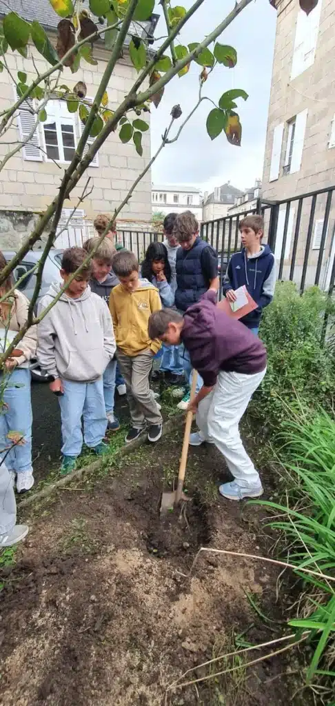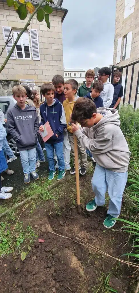 Beaucoup d’ idées et d’entrain, des élèves motivés pour éventuellement essayer de végétaliser le collège, optimiser le tri du papier ; c’ est dans cet axe là et pour montrer l’ exemple que chaque DDD a participé à « la pose du 1er nouvel arbre » de l’ établissement : un pommier a en effet été planté avec la participation active des élèves. Reste à chacune et chacun de s’ occuper de cet être vivant de manière à pouvoir cueillir ses fruits à l’automne dans quelques années…