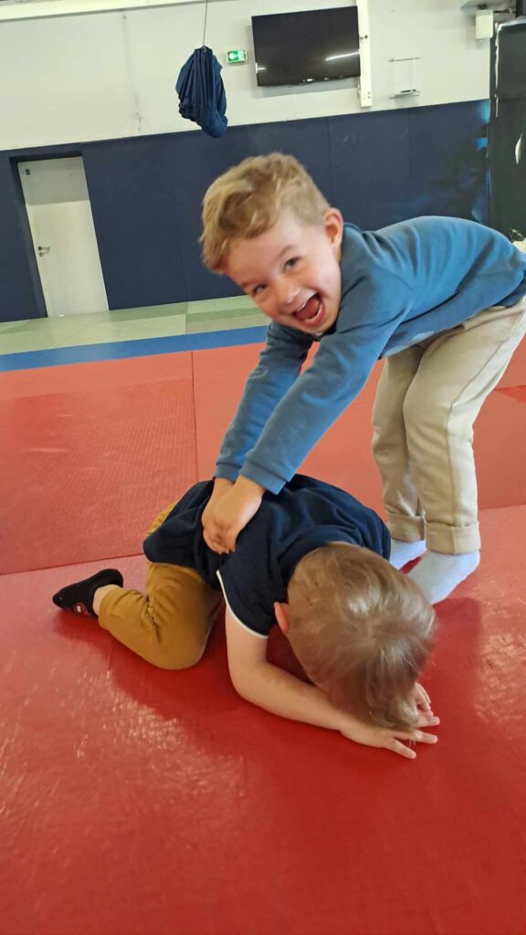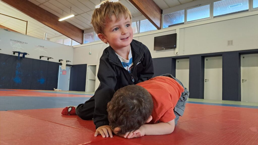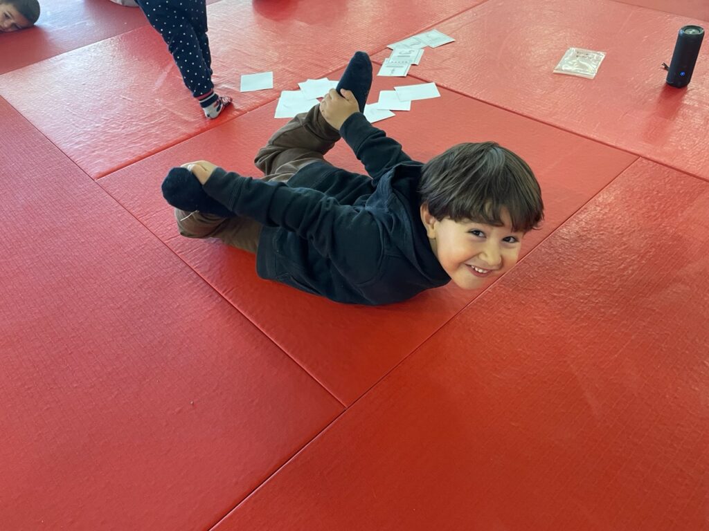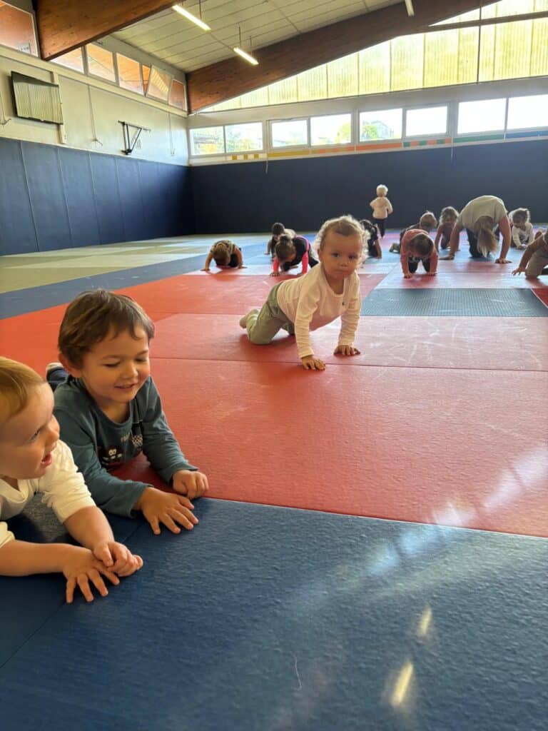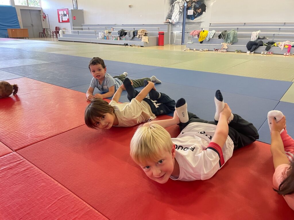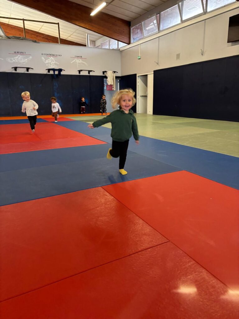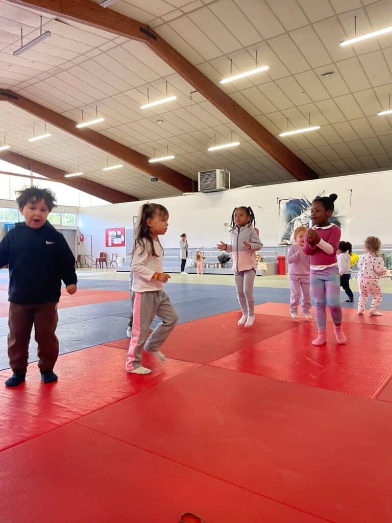 Tous les mardis matins, les 3 classes de maternelle de l’école Bossuet vont au dojo. On s’échauffe, on saute, on s’équilibre, on fait un peu de gym… et même du yoga ! Un moment pour découvrir son corps tout en s’amusant.