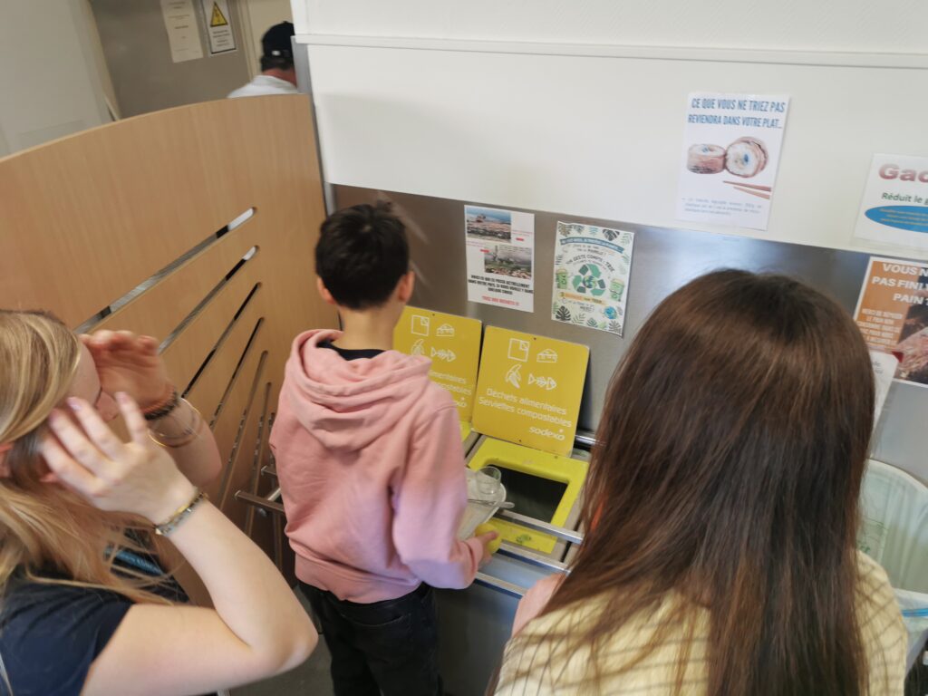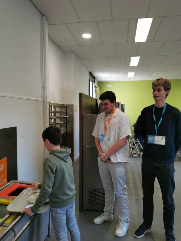 Durant le temps du déjeuner, ils ont accompagné les élèves devant les bacs de tri, prodiguant conseils et explications concrètes. L’occasion de revenir sur les erreurs les plus fréquentes, comme les serviettes en papier jetées dans les pots de yaourt, encore trop souvent observées.
