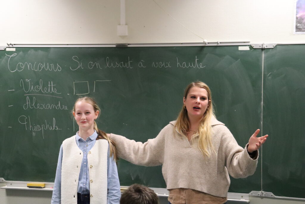 Cette semaine, Violette se prépare activement à l’étape suivante : l’enregistrement d’une vidéo, sur un texte de son choix, qui sera envoyée au jury national. Un travail de préparation est donc mené autour de la diction, de l’intonation et de la posture afin de proposer une lecture maîtrisée.