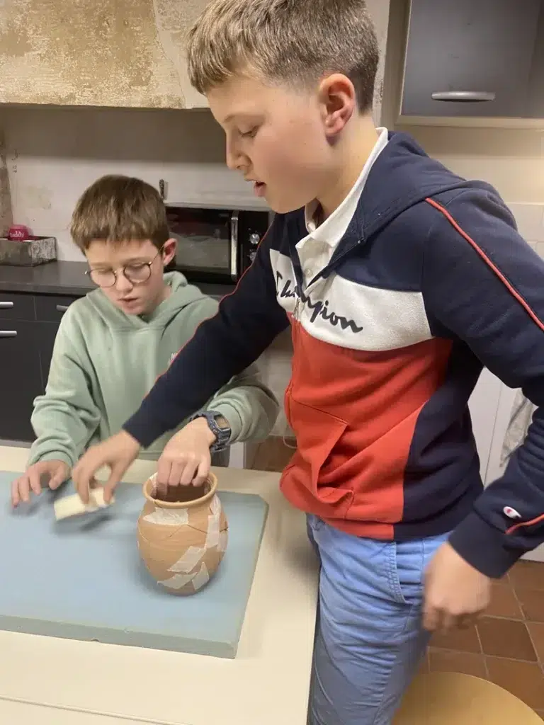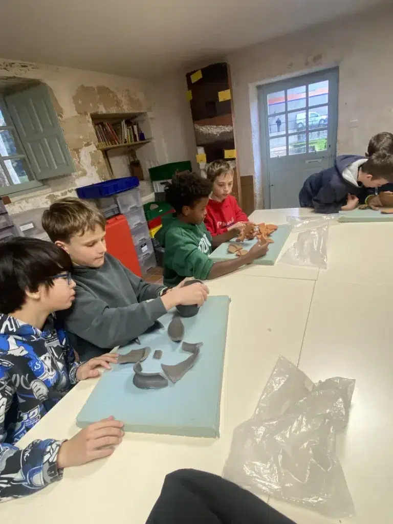 La suite de la journée  a été consacré à la découverte du métier d’archéologue, et plus particulièrement de celui de céramologue. Les élèves se sont essayés à la reconstitution de fragments de céramique, manipulant les tessons avec soin pour redonner forme à des objets du passé. Leur curiosité et leur intérêt ont été remarqués tout au long de l’activité.