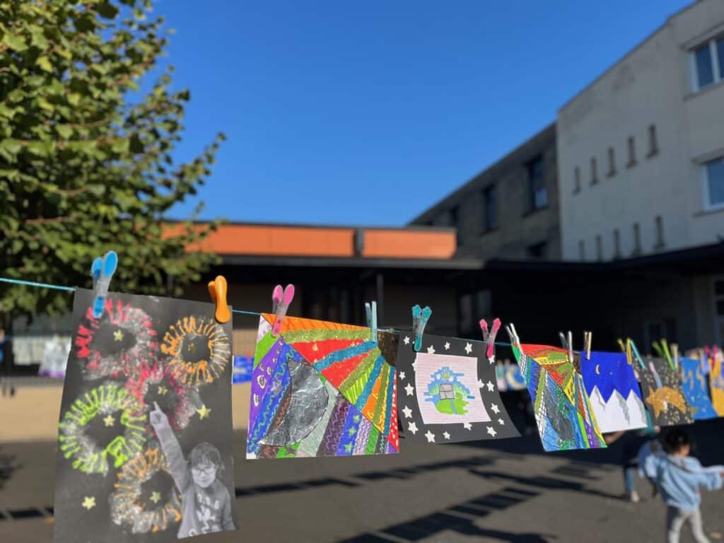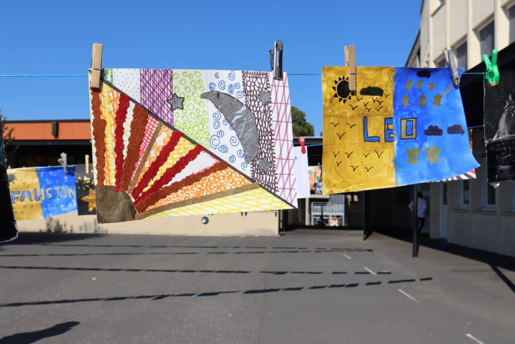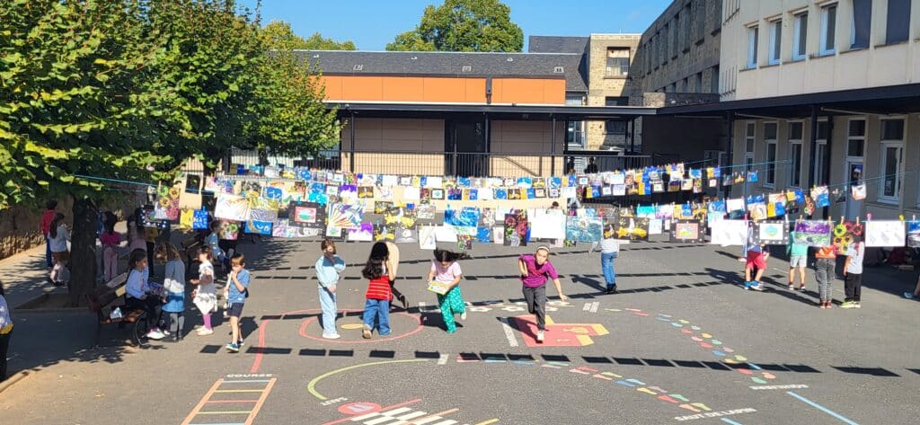 Aujourd’hui, notre école a vibré au rythme de la Grande Lessive, ce rendez-vous artistique où les productions visuelles de nos élèves prennent vie sur des fils tendus dans la cour. Les œuvres, toutes uniques, ont transformé l’espace en une véritable galerie à ciel ouvert, mêlant couleurs, formes et imagination.