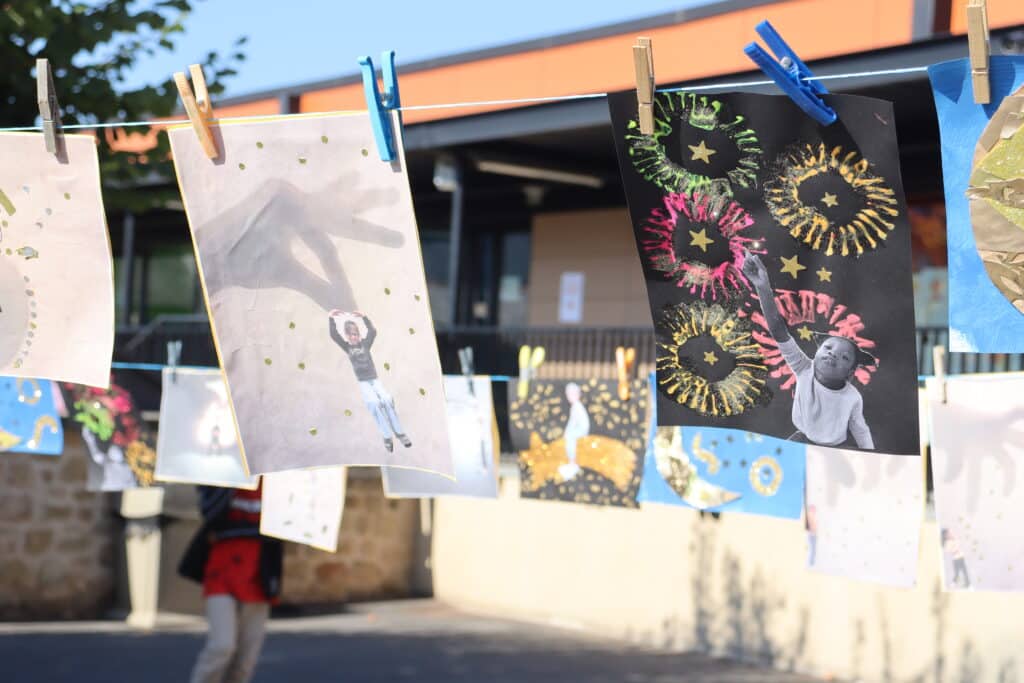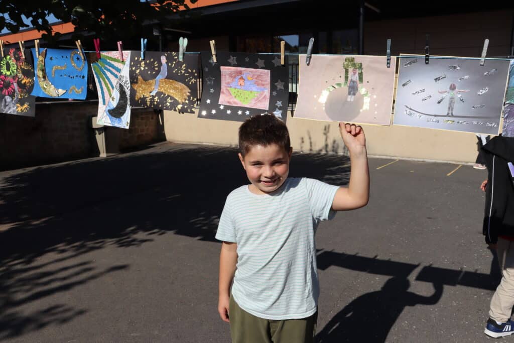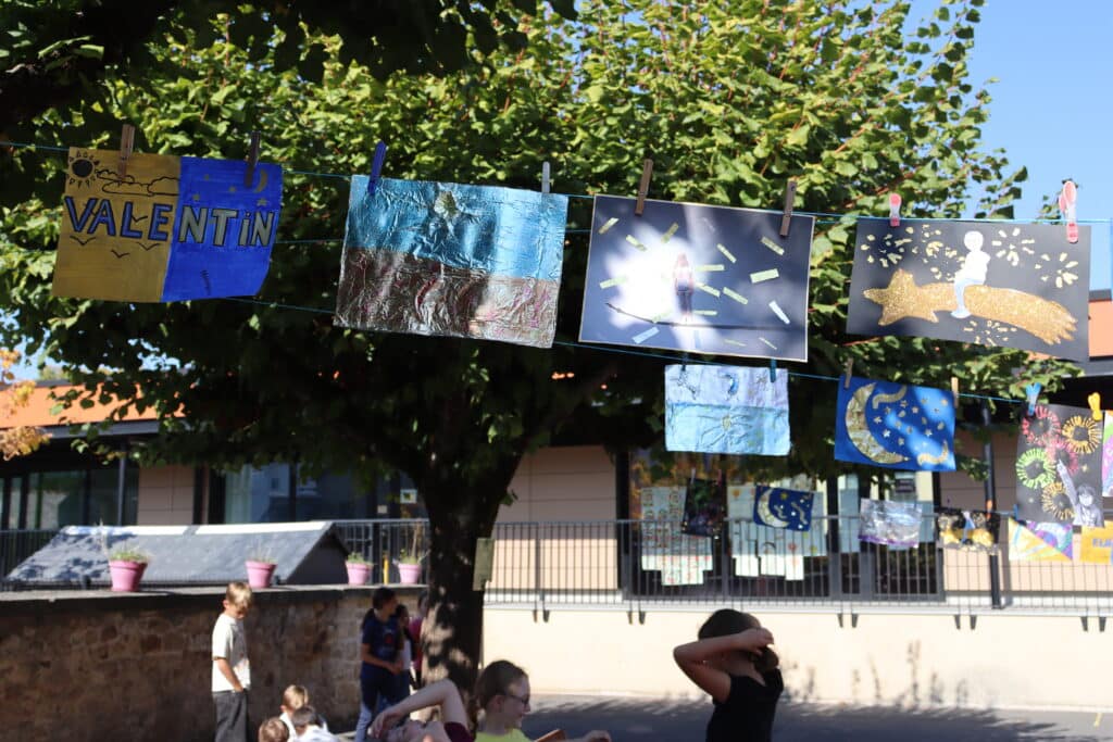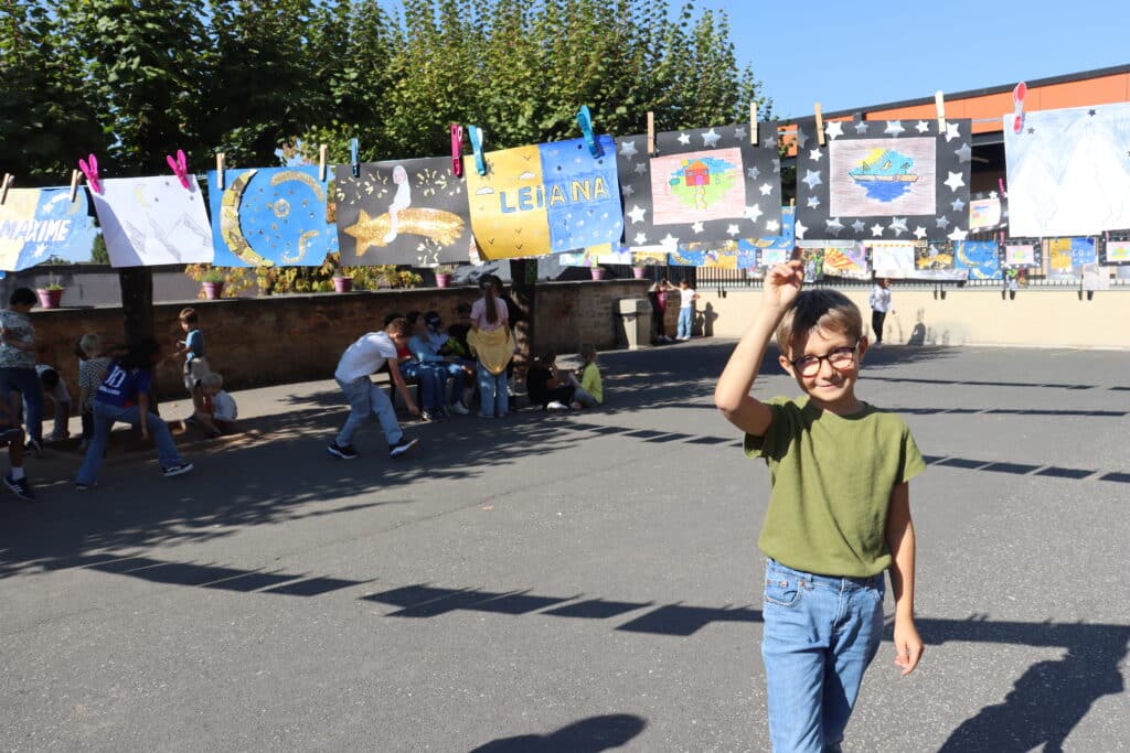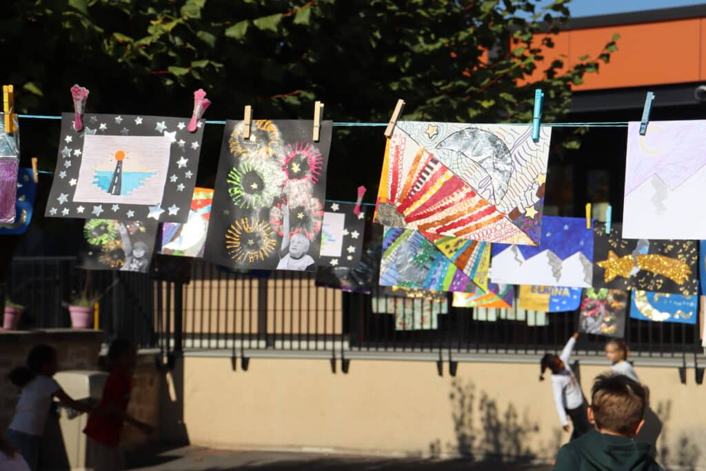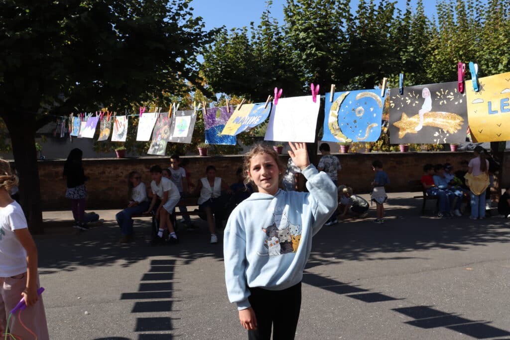 Pendant que les enfants admiraient fièrement leurs créations, la cour résonnait de rires et de courses effrénées. Les cris joyeux des jeux de récréation se mêlaient aux couleurs éclatantes des dessins et collages, offrant un mélange parfait entre expression artistique et moments de liberté. La Grande Lessive a ainsi transformé la cour en un espace vivant, où art et jeux cohabitent dans une joyeuse effervescence.