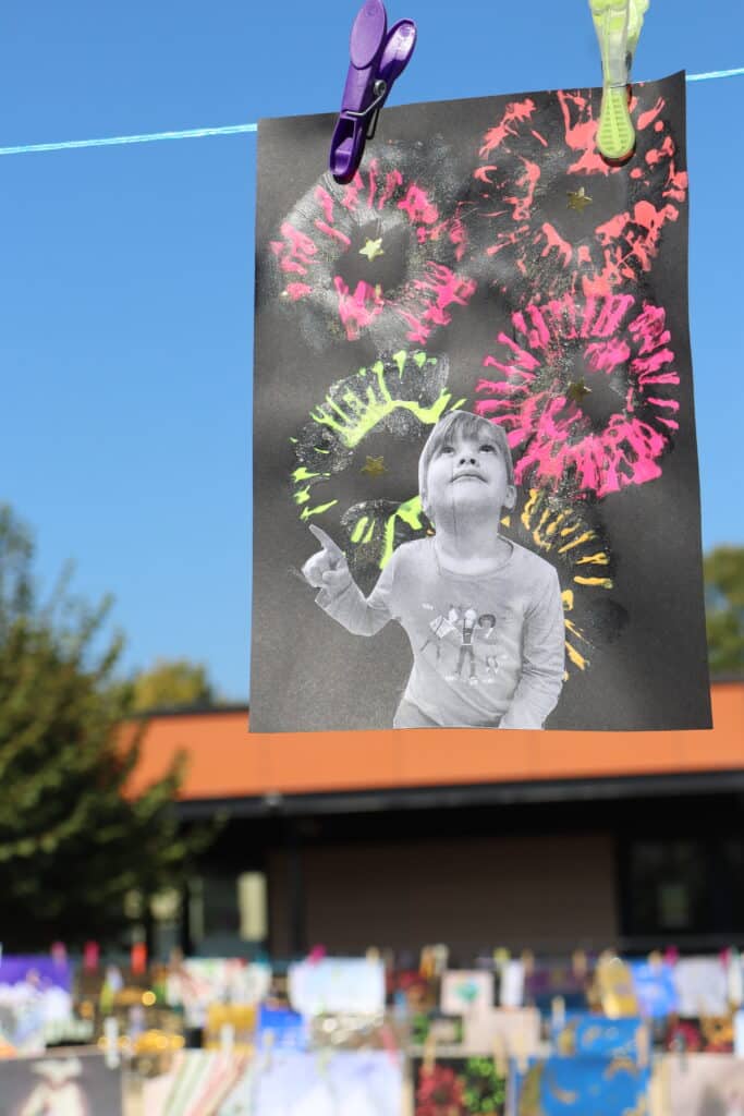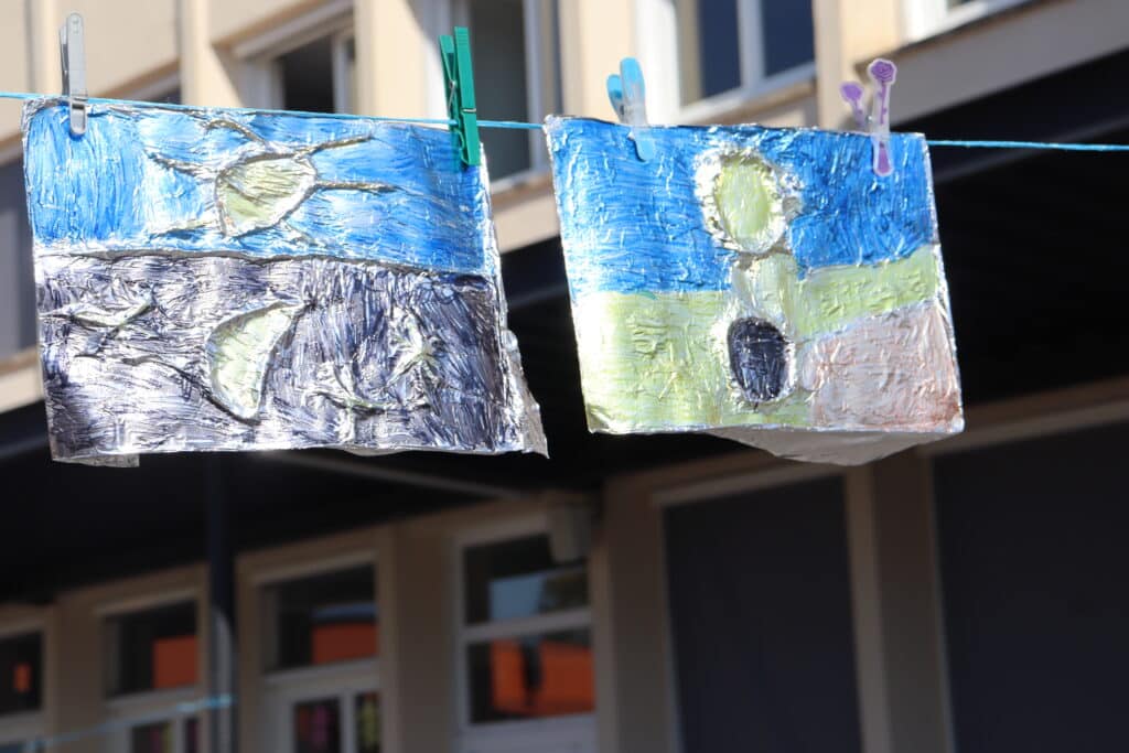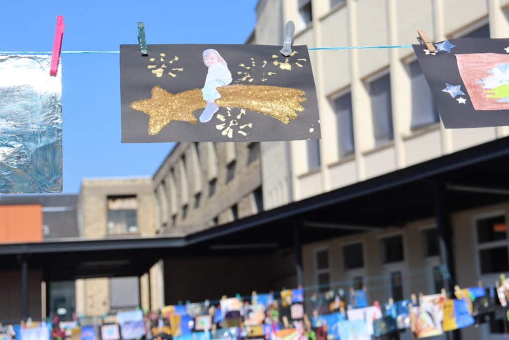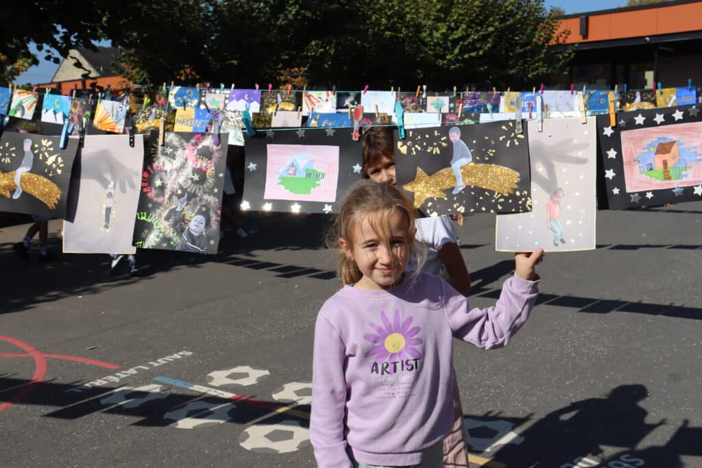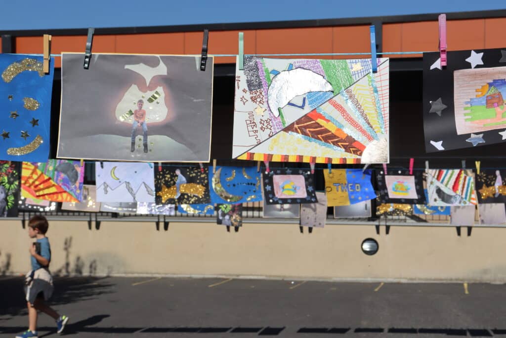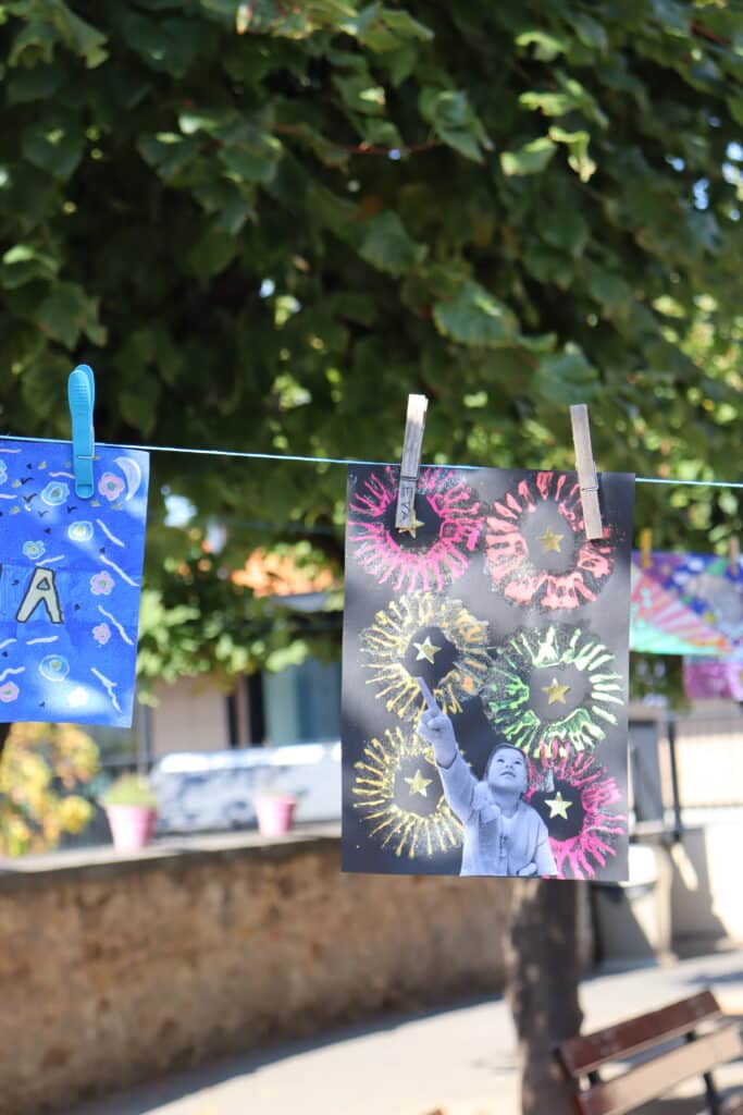 Pendant que les enfants admiraient fièrement leurs créations, la cour résonnait de rires et de courses effrénées. Les cris joyeux des jeux de récréation se mêlaient aux couleurs éclatantes des dessins et collages, offrant un mélange parfait entre expression artistique et moments de liberté. La Grande Lessive a ainsi transformé la cour en un espace vivant, où art et jeux cohabitent dans une joyeuse effervescence.