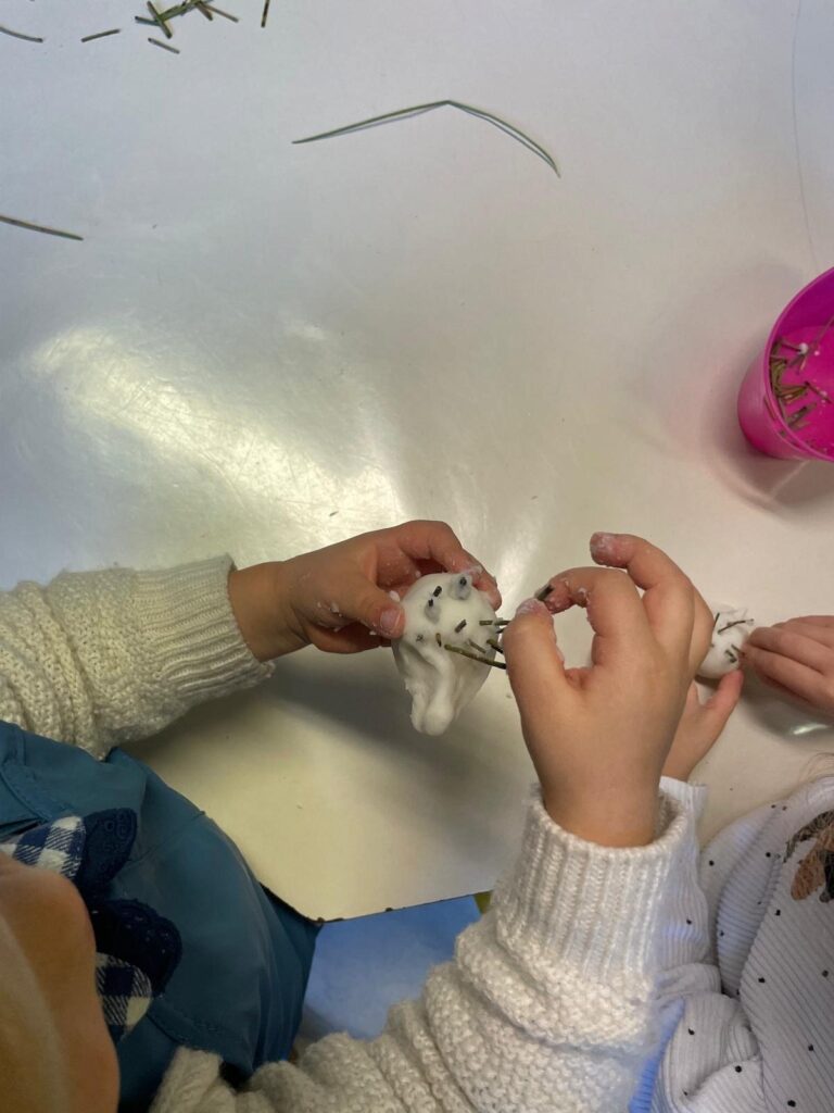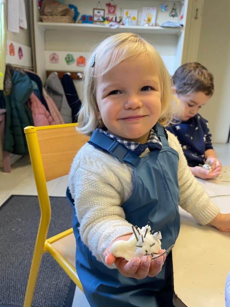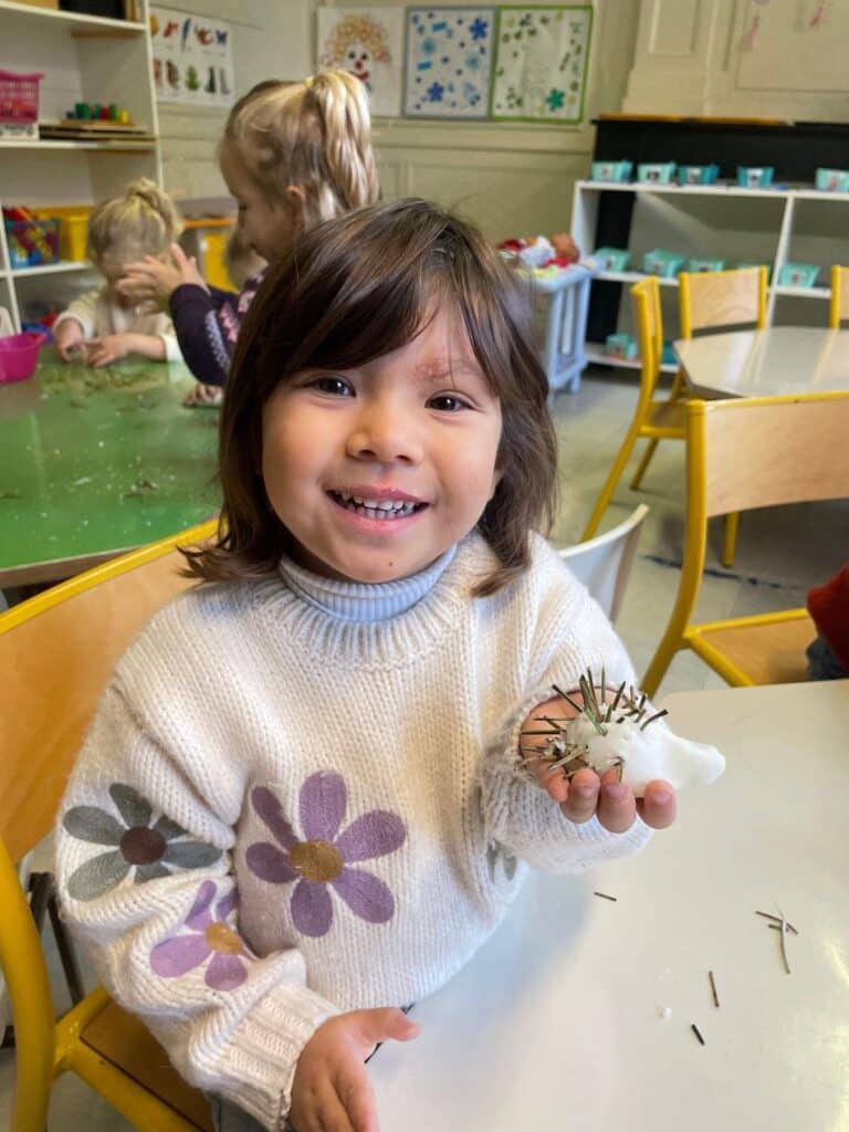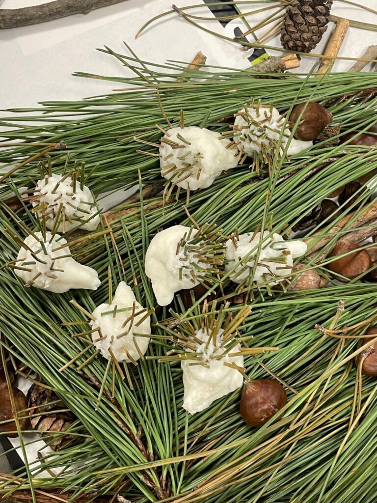 Et c’est avec un petit hérisson que les élèves de TPS, PS, MS et GS de Notre Dame ont poursuivi le chemin de l’apprentissage différent. Il ne s’agit pas de n’importe quel Hérisson puisque c’est celui qu’ils ont eux-mêmes fabriqué ! Après avoir tout appris de sa vie, de son hibernation et de ses déplacements, la place a été laissée à la créativité de chacun. Pâte autodurcissante et aiguilles de pin se sont transformés sous les petits doigts agiles en hérissons au chaud pour l’hiver dans leurs nids faits de feuilles, de mousse et de brindilles.