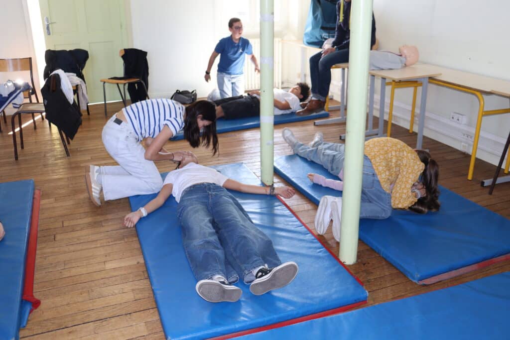 Les élèves de 4A du collège Notre Dame ont eu leur journée PSC ( Premiers Secours Citoyen) . Tout au long de la journée les élèves apprennent les gestes qui sauvent, les gestes de mise en sécurité ( la PLS Position Latérale de Sécurité) et se trouvent confrontés à toutes sortes de situations : brûlures, coupures, malaises en tous genres , de manière à savoir réagir en toutes circonstances avec les bons gestes. Autant de cas pratiques pour obtenir à la fin de leur formation leur certificat de Premiers secours.