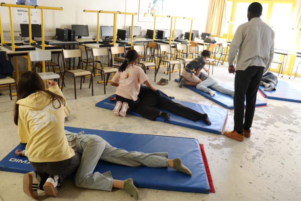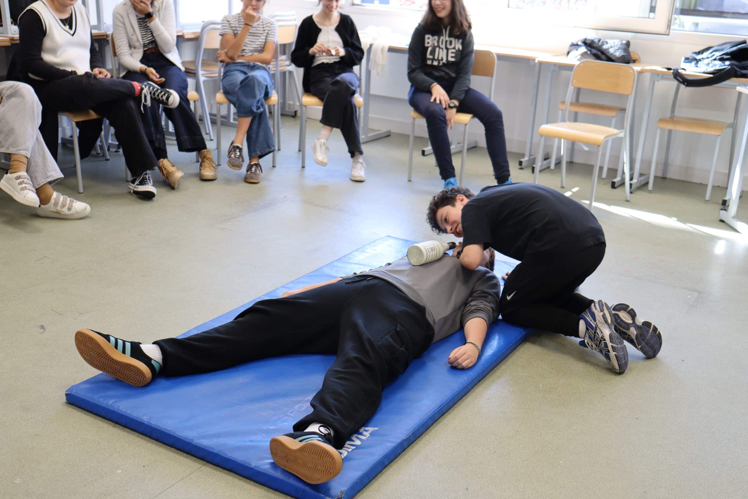 Ce vendredi 17 octobre, les élèves de 4A du collège Notre Dame ont eu leur journée PSC ( Premiers Secours Citoyen) . Tout au long de la journée les élèves apprennent les gestes qui sauvent, les gestes de mise en sécurité ( la PLS Position Latérale de Sécurité) et se trouvent confrontés à toutes sortes de situations : brûlures, coupures, malaises en tous genres , de manière à savoir réagir en toutes circonstances avec les bons gestes. Autant de cas pratiques pour obtenir à la fin de leur formation leur certificat de premiers secours.