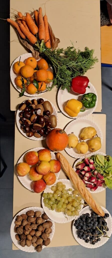 A la vue des pommes, poires, raisins, noix, châtaignes, potiron et autres trésors d’automne, les yeux des enfants brillaient chaque seconde un peu plus.