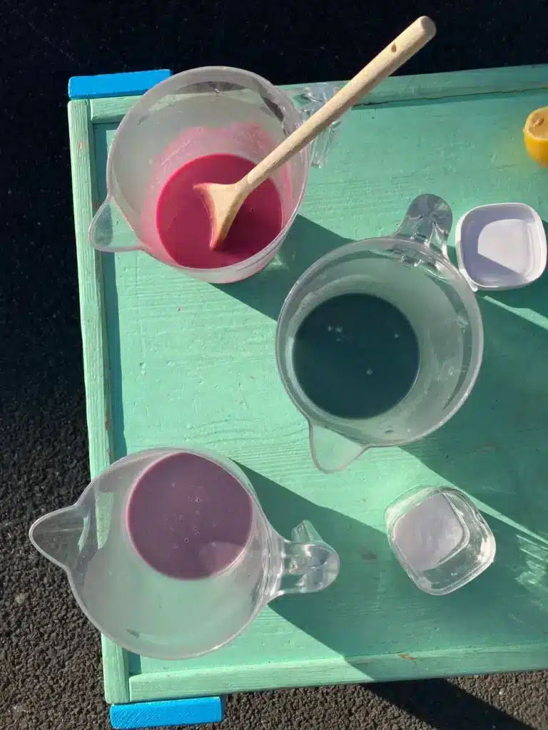 Des ingrédients trouvés dans la cour… Une soupe violette… qui change de couleur…à mesure que l’on y rajoute des ingrédients magiques…