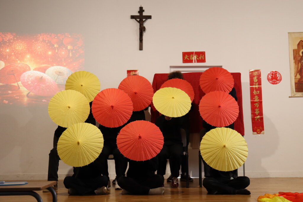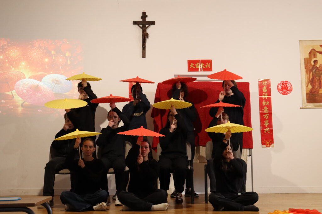 Enfin, vendredi, l’ensemble des collégiens de Notre Dame a pu assister à un spectacle haut en couleurs préparé par les classes de chinois. Inspirée de la célèbre émission du Nouvel An, cette représentation mêlait chants, danses et théâtre pour célébrer ensemble l’entrée dans l’année du Cheval.