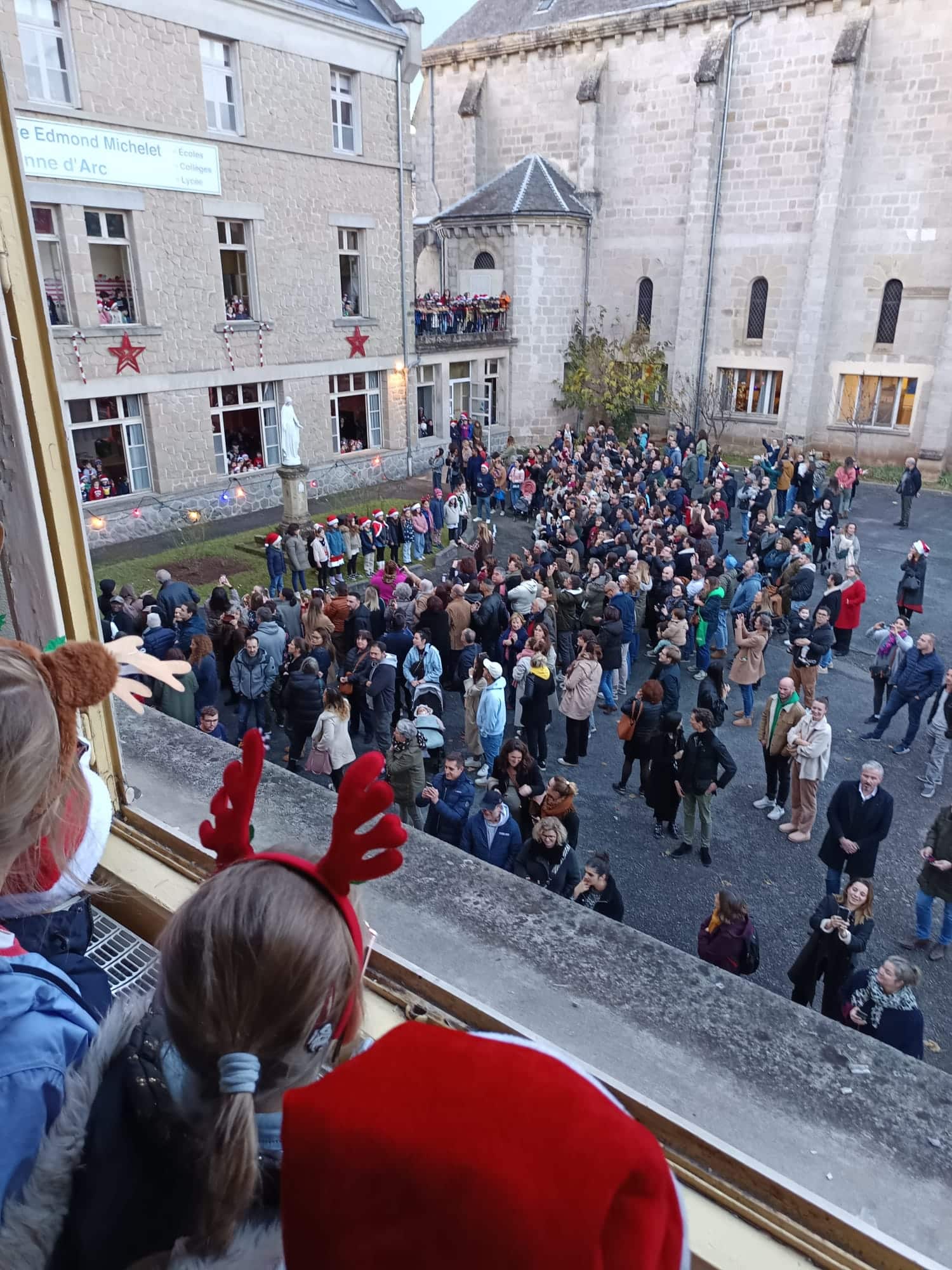 Hier soir, la cour d’honneur de l’école Jeanne d’Arc s’est illuminée d’une ambiance toute particulière lors d’une douce surprise de Noël proposée aux familles. Un temps simple et joyeux, placé sous le signe du partage et de la convivialité.