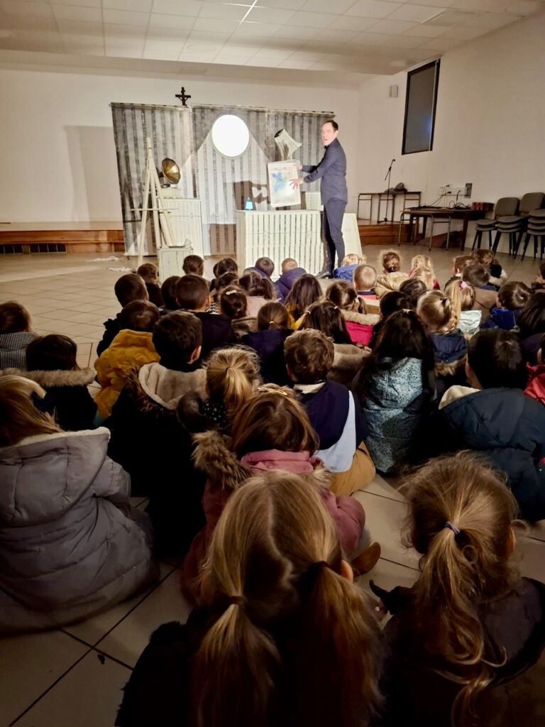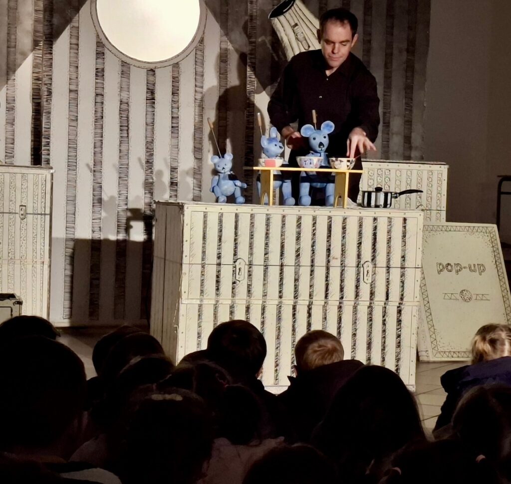 Le spectacle « Billenbois » était de qualité : du suspense, de l’humour, avec des alexandrins et de petits effets spéciaux bien sympathiques pour les élèves de maternelle de l’école Notre Dame. Que de péripéties autour de cette représentation à rebondissements explorant l’histoire de « Boucle d’or et les 3 ours » et faisant référence à 3 artistes peintres bien connus : Picasso, Mondrian et Míro !