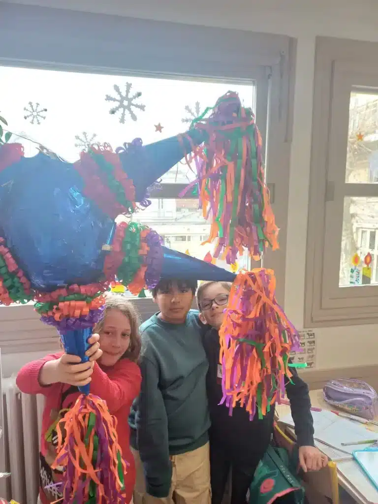 En retour, il a fait découvrir aux élèves une part de sa culture. L’un des moments les plus marquants a été l’initiation à la fabrication de piñatas, une tradition mexicaine haute en couleurs. Les élèves ont pris beaucoup de plaisir à créer, décorer et comprendre l’origine de cet objet festif.