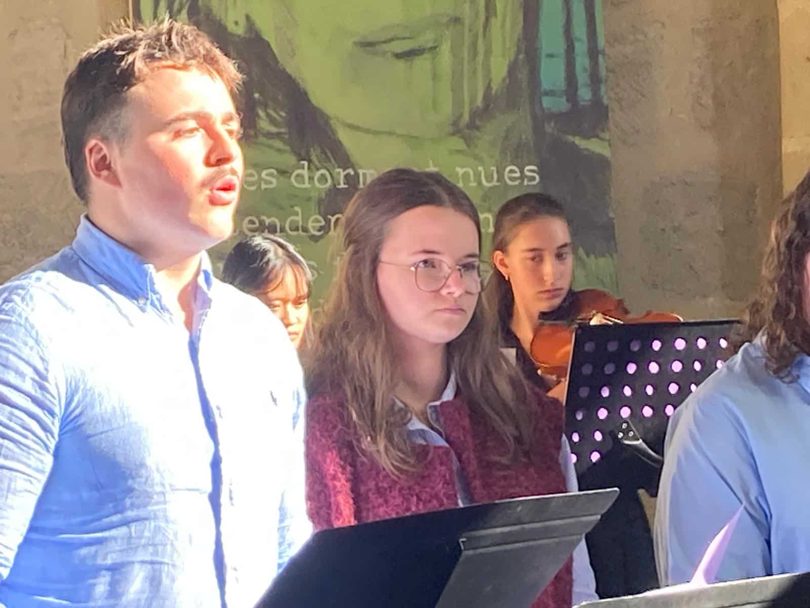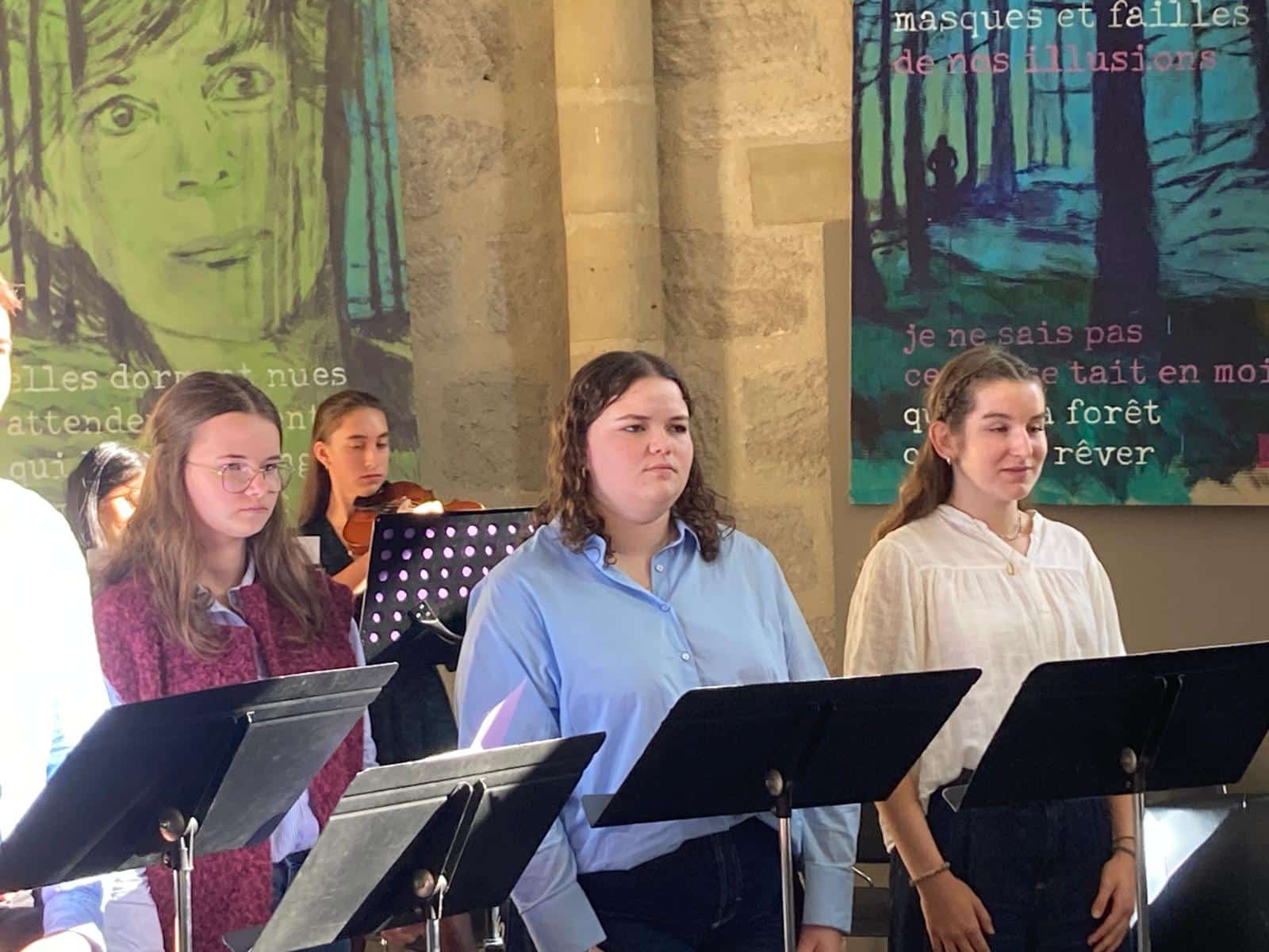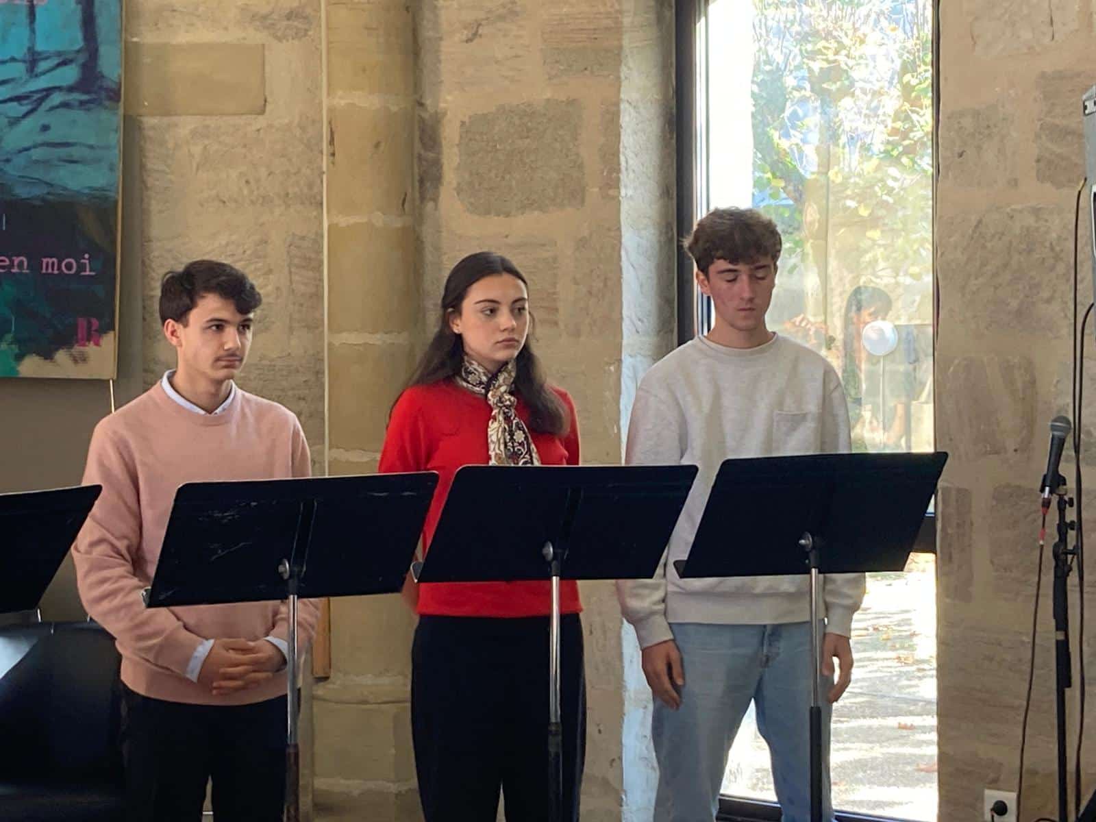 En hommage à son écriture et à sa réflexion sur le lien entre l’humain et la nature, des élèves de première et terminale option et spécialité théâtre ont rendu hommage à son univers poétique en mettant en voix des extraits de Mes forêts à l’Ouvroir, lors de la clôture de la Foire.