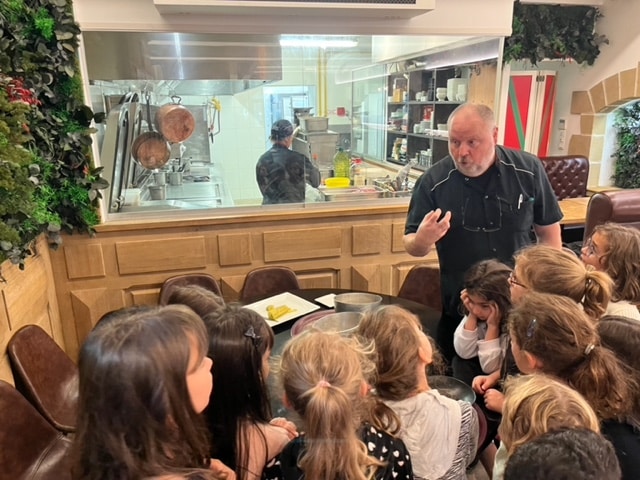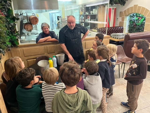 Le mardi, les enfants ont poussé les portes du restaurant « L’Instant Basque » pour une matinée placée sous le signe de la gourmandise. Accueillis par le chef, ils ont été répartis en deux groupes : pendant que les uns participaient à un atelier chocolat, les autres découvraient les mystères des épices lors d’un atelier olfactif. Les rôles ont ensuite été inversés, permettant à chacun de vivre ces deux expériences sensorielles. Entre parfums envoûtants, éclats de rire et douce odeur de cacao, cette matinée a éveillé bien des appétits !